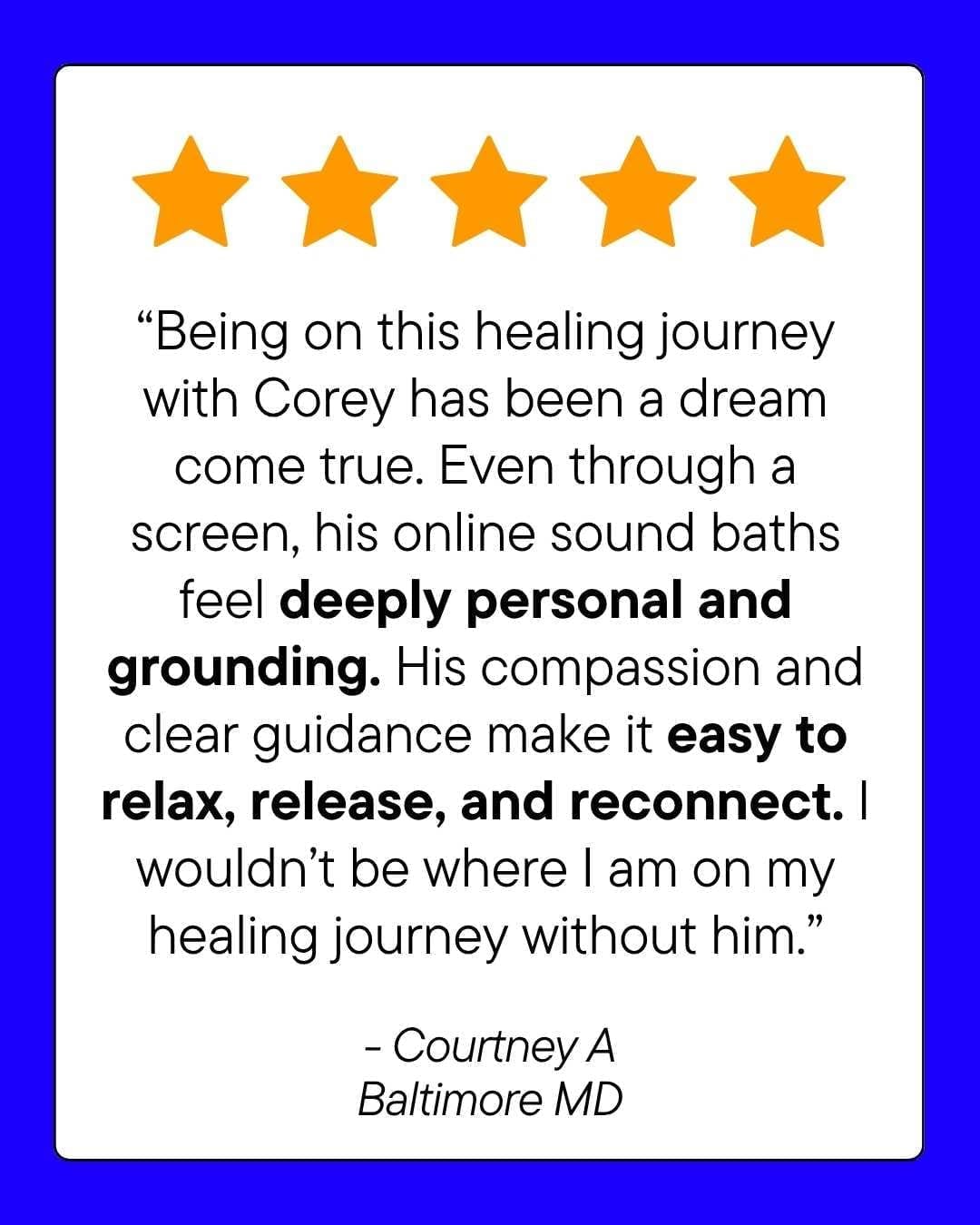 Live virtual sound bath sessions twice a week and access to 72 hour replays